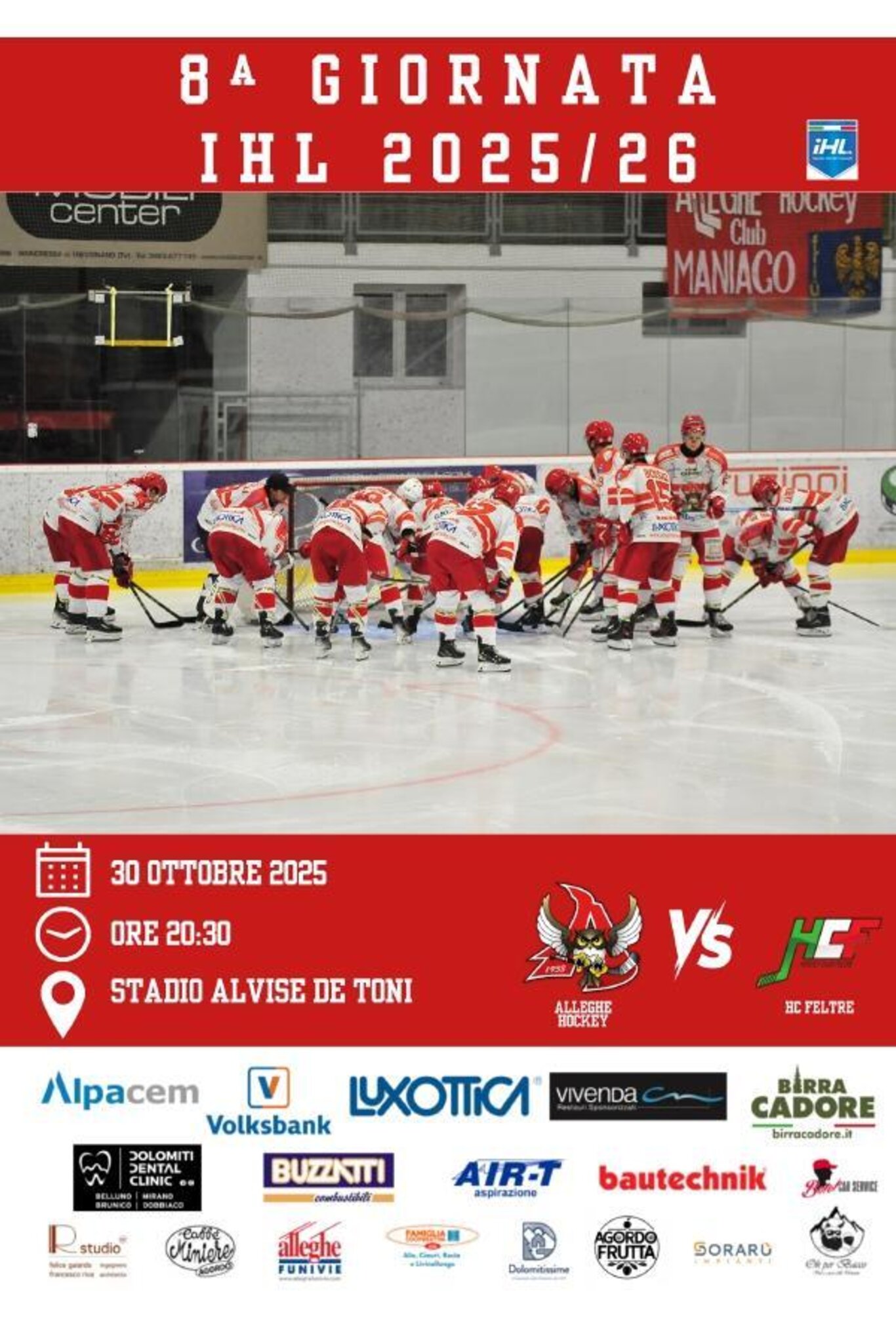 Eishockeyspiel in der Eishalle Alvise De Toni in Alleghe, gültig für die italienische Meisterschaft IHL zwischen den Mannschaften Alleghe Hockey und Feltre