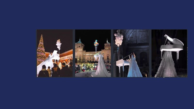 Spektakuläre Unterhaltung mit einer professionellen Pianistin, die mit ihrem Klavier 'magisch' von Ballons schwebt.