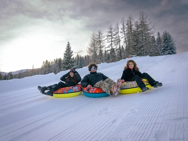 Im Rifugio Flora Alpina, am Fuße des berühmten Valfredda, erwartet Sie Snowtubing-Spaß pur.