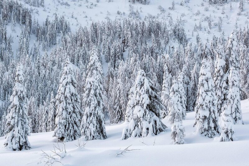 Beim Wandern auf dem Schneepfad durch die majestätischen Wälder von Valgrande in Richtung der Lunelli-Hütte, im Angesicht der Berge und während wir die erstaunlichen Veränderungen des Wassers beobachten, wenn die Temperaturen unter den Gefrierpunkt fallen. Doch das Leben geht weiter, und wir lesen die Spuren darauf im Schnee.