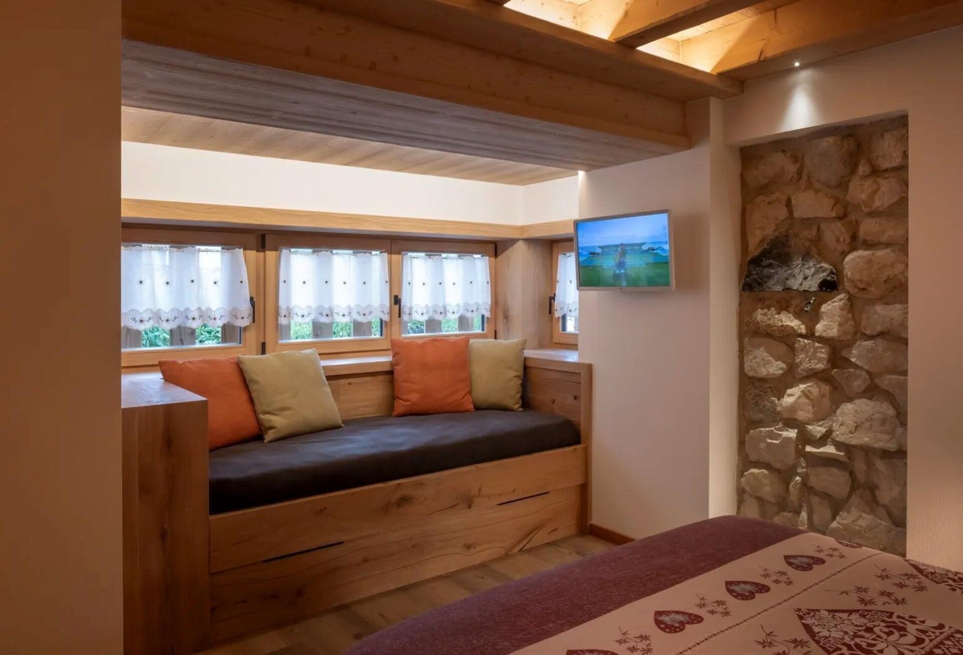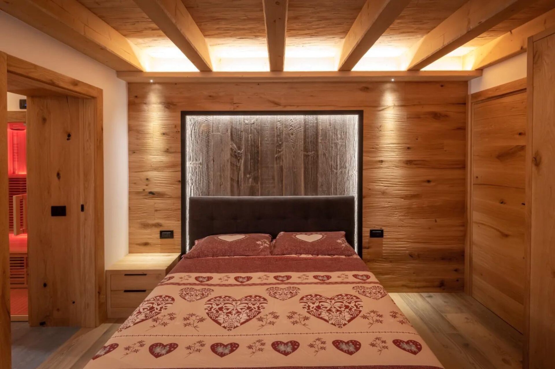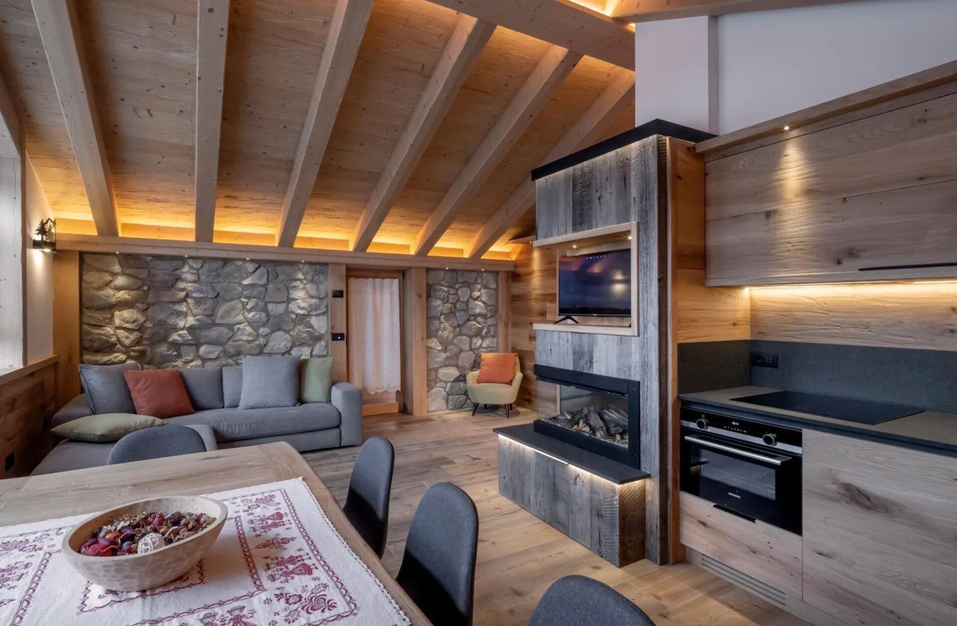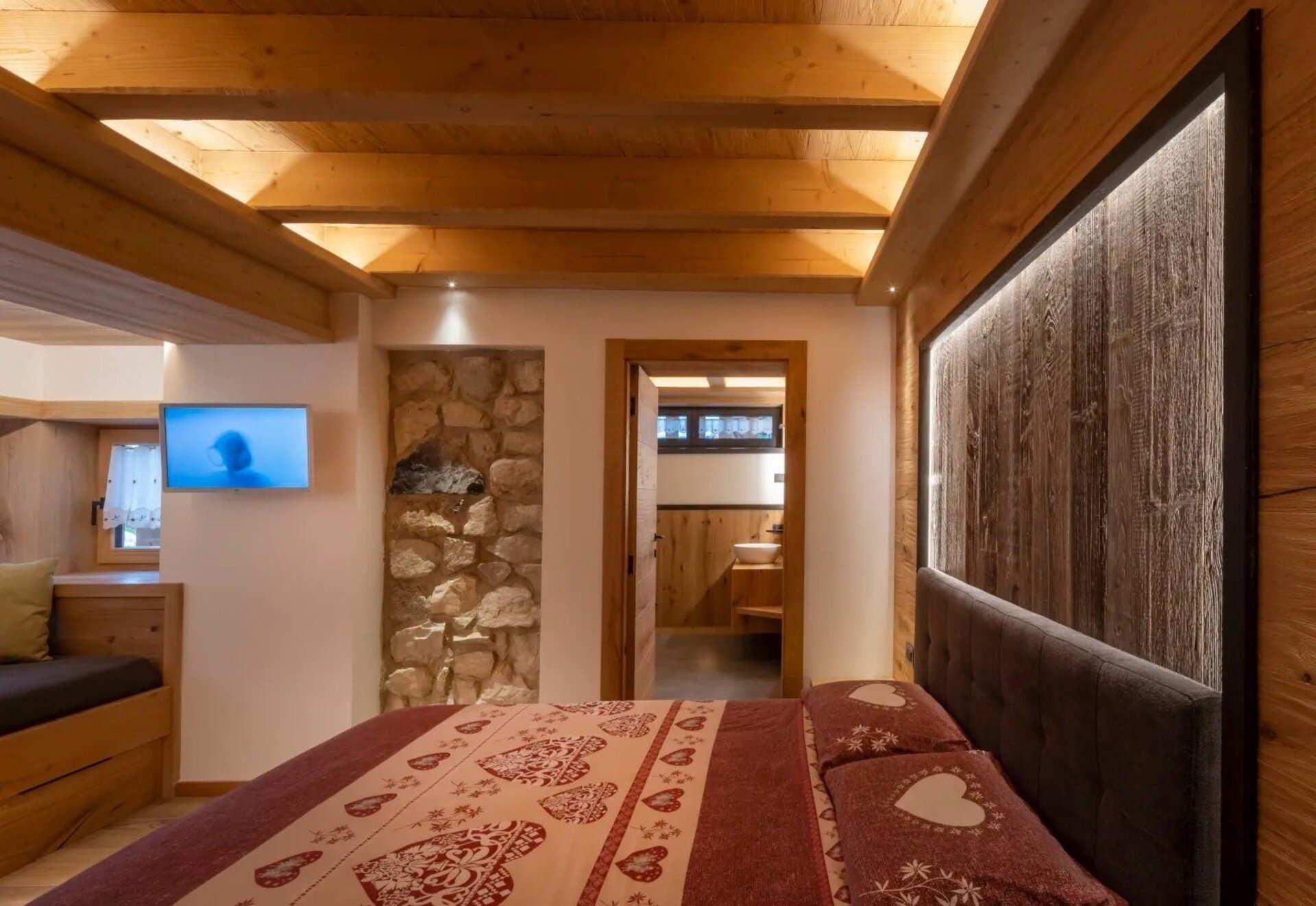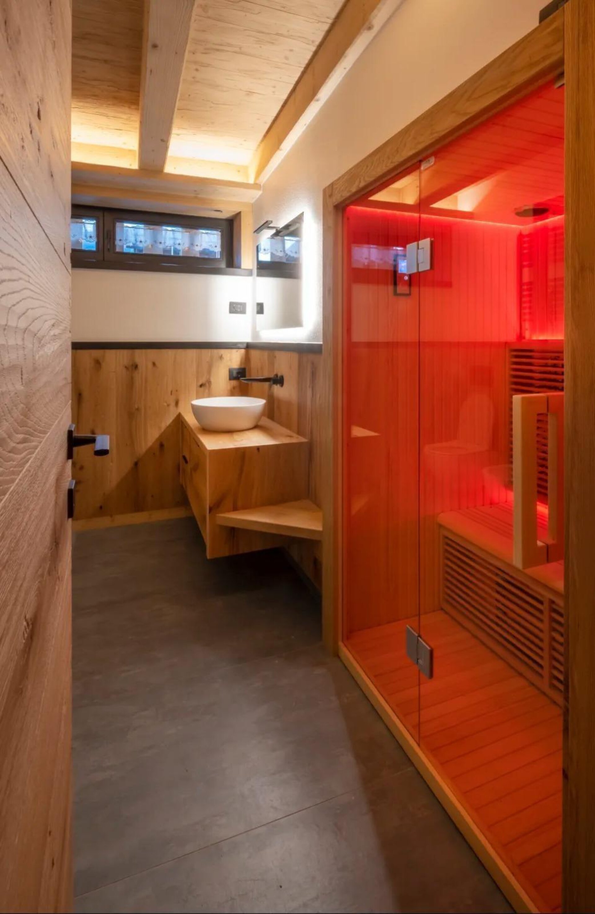 Ausstattung des Chalets: 2 Schlafzimmer, 2 Doppelbetten, 3 Bäder, Sauna, 2 Einzelschlafsofas, Haartrockner, Waschmaschine/Trockner, Bettwäsche und Handtücher, kostenloses WiFi, TV, Küche mit Geschirrspüler, Backofen/Mikrowelle, Minibar, Kaffeemaschine, 2 Parkplätze, Dolomitenblick, E-Bike Aufladung, Skiabstellraum, keine Tiere, keine Raucher.