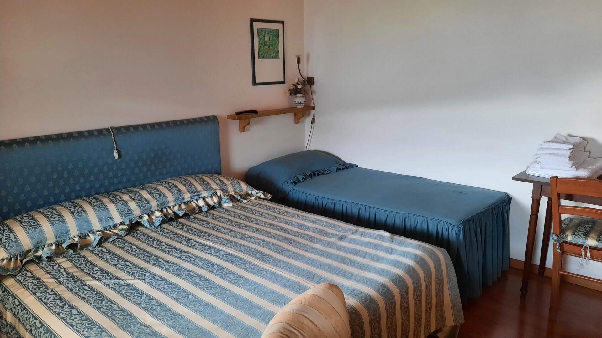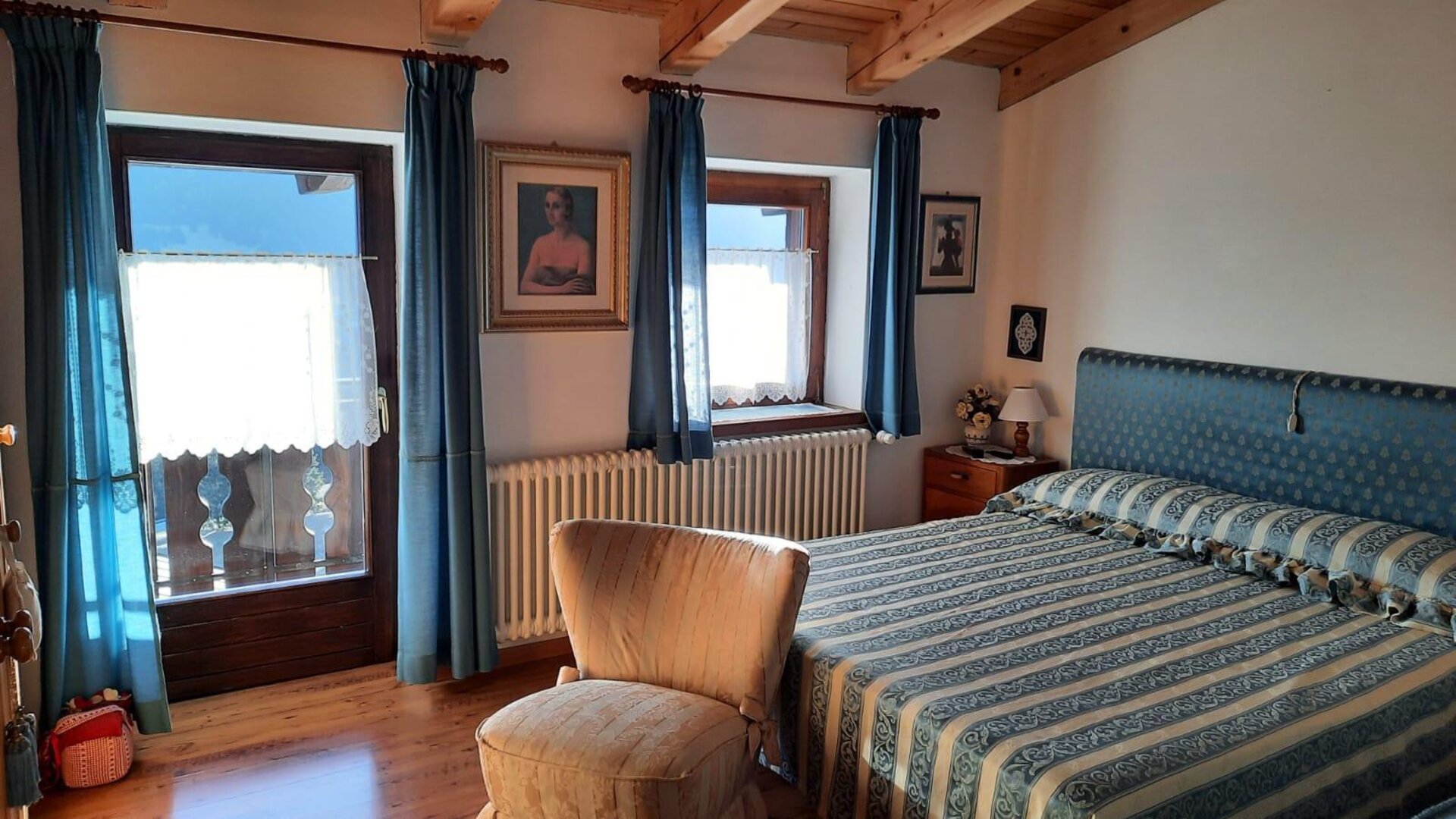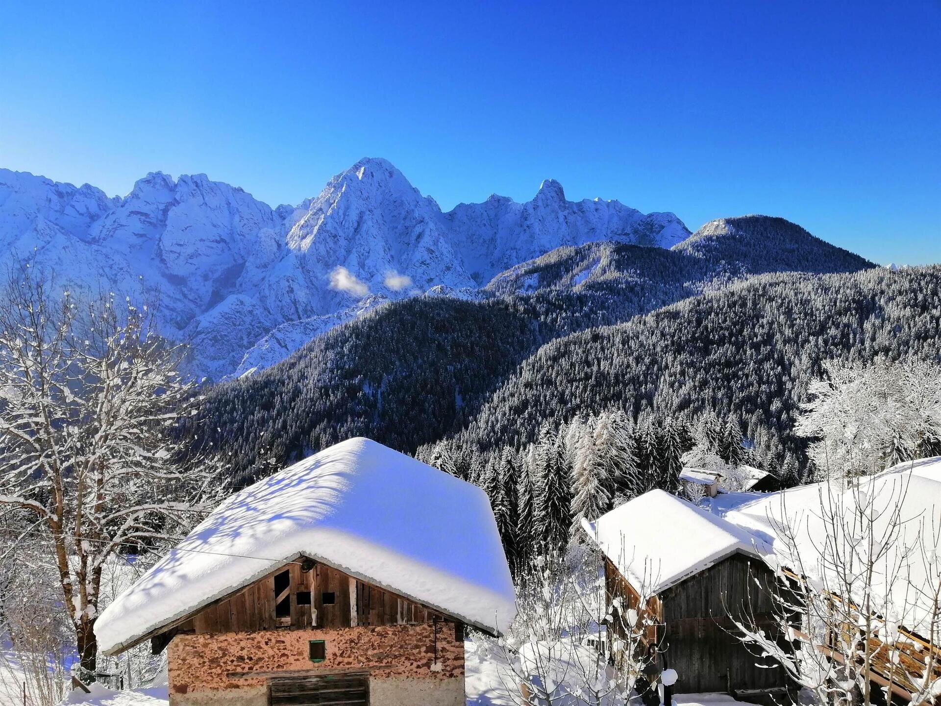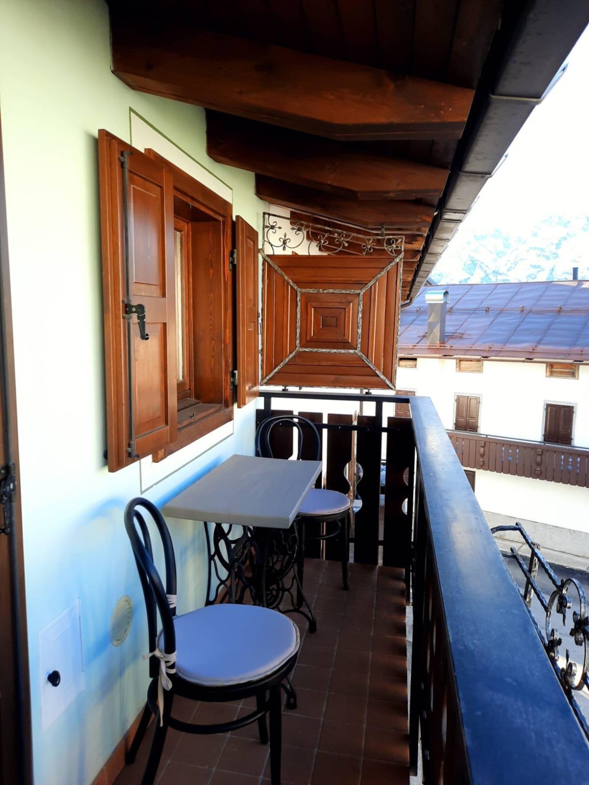 Romantisches Dachgeschoss mit tradizioneller Bergeinrichtung, Nord und Suedterrasse mit Panoramablick auf die Dolomiten der Region Veneto. Es besteht aus Kueche, Wohnzimmer mit Bettsofa, Doppelzimmer mit einem dritten Bett und Badezimmer mit Dusche. Maximale Ruhe und Privatsphaere.