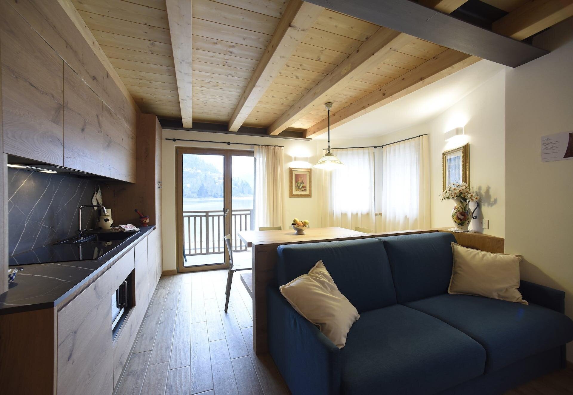 The carefully designed furnishings combine tradition with design and use natural and sustainable materials. The view of the lake will always ensure a dreamy awakening while the modern and cosy wellness area available to guests will give you moments of true relaxation and pleasure.