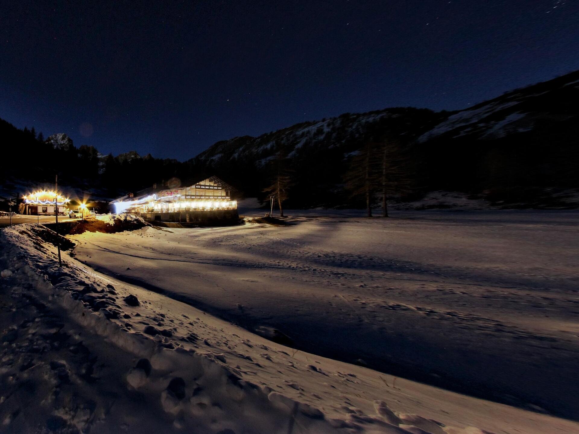 Die Schutzhütte verfügt über eine Snowtubing-Strecke, auf der Sie sanft über den Schnee gleiten und dabei die herrlichen Gipfel von Focobon bewundern können.