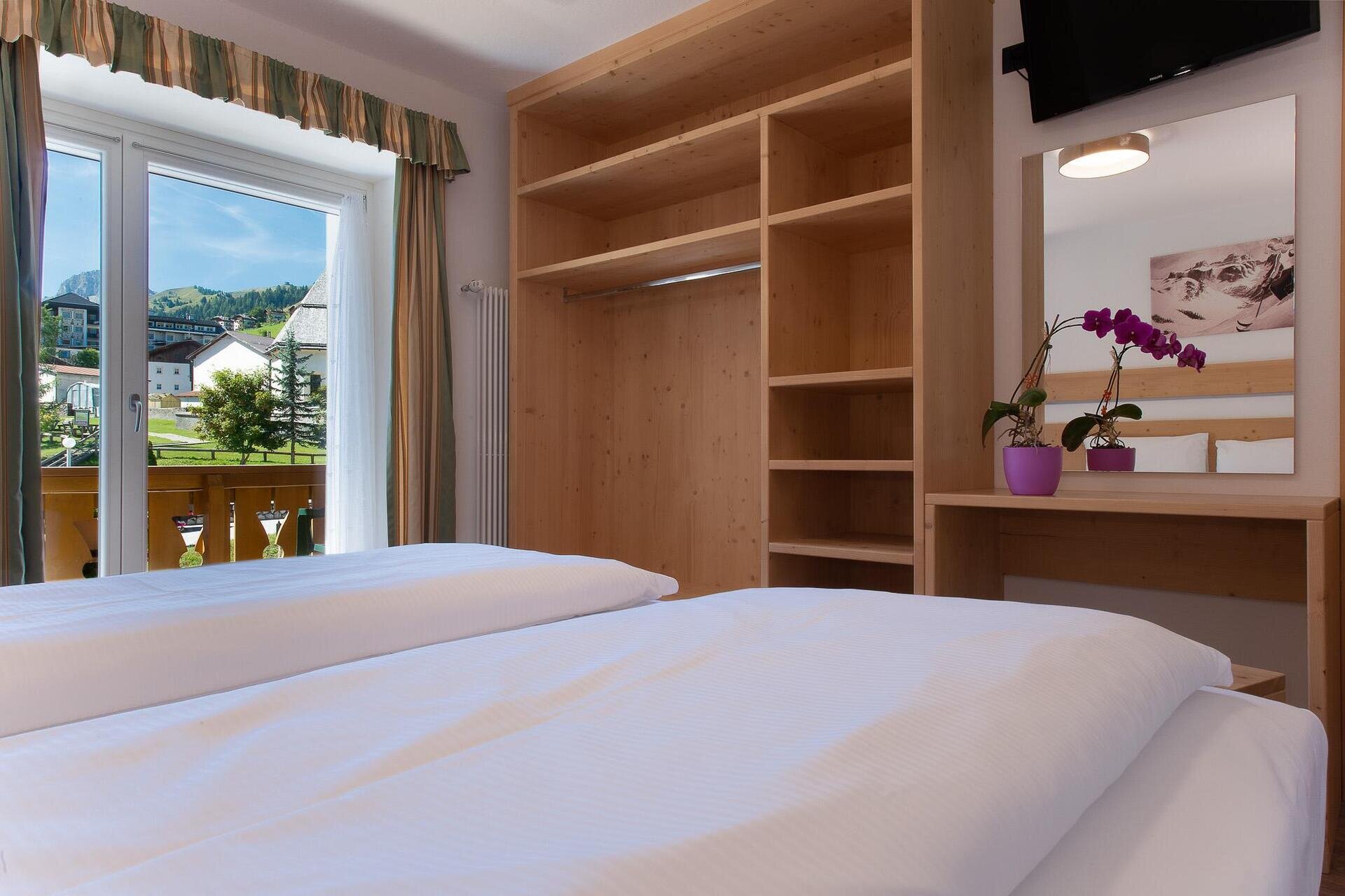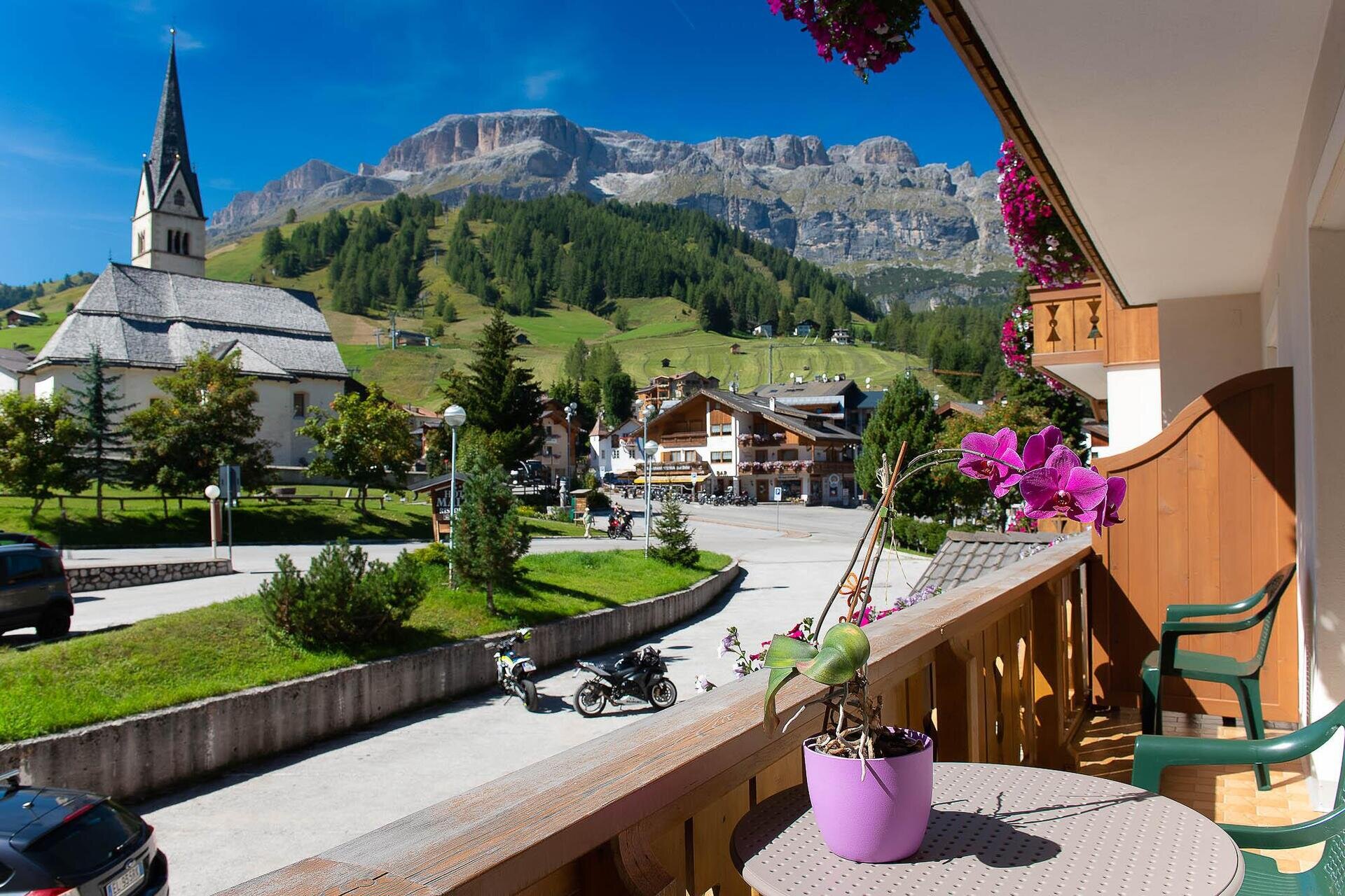 The Hotel Marilena enjoys a central location, 150 m from Portavescovo cableway. It is an ideal base for excursions, hikes, climbing tours, motorcycle tours; situated in the heart of the Superski Dolomiti area.