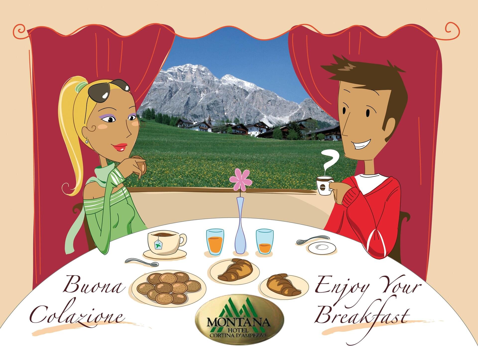 All rooms have private bathroom, telephone, satellite TV with major international and Italian channels such as BBC, CNN and Eurosport, radio and safe. We have an internet point and there is WiFi in every room. We offer a rich buffet breakfast with a vast selection of teas in the breakfast room with a view over the pedestrian street. (Corso Italia). The hotel has a private car park. We have a ski room with waxing table and boot warmers/dryers. There is also a room for storing bicycles. The hotel is 200m from the Faloria-Cristallo cable car and 50m from the skibus and local buses. We are nature friendly; part of the hot water is heated with solar panels.