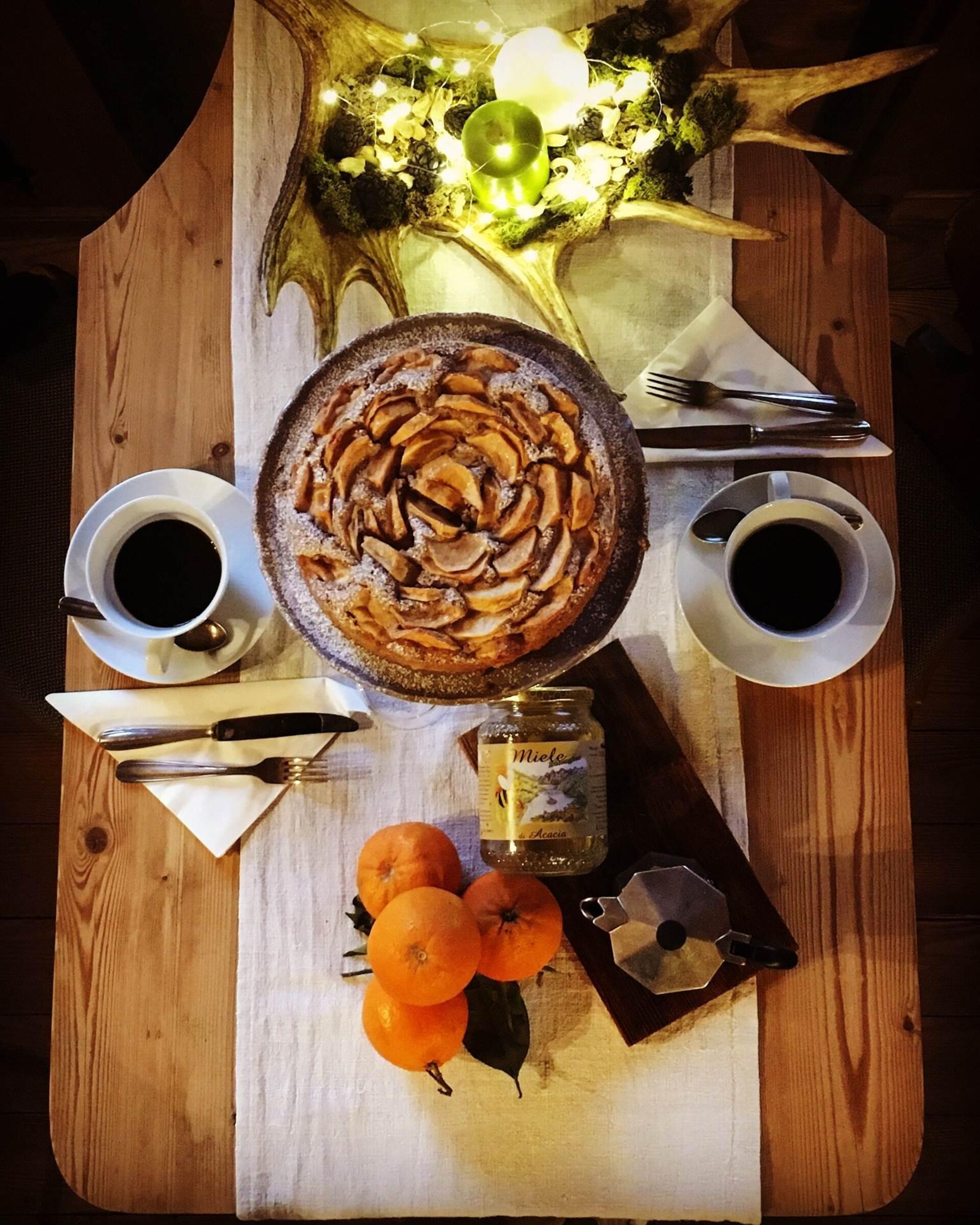 You might catch a glimpse from the window of deer eating apples under the trees, while the smell of bread and the fragrant air of resins will invite you to enjoy a hearty and healthy breakfast, primarily based on organic products at zero km, with particular attention to the requests and needs of the guests.