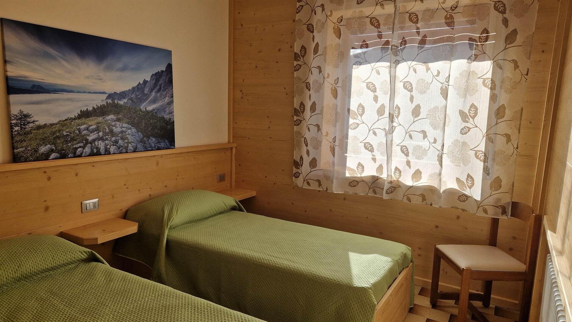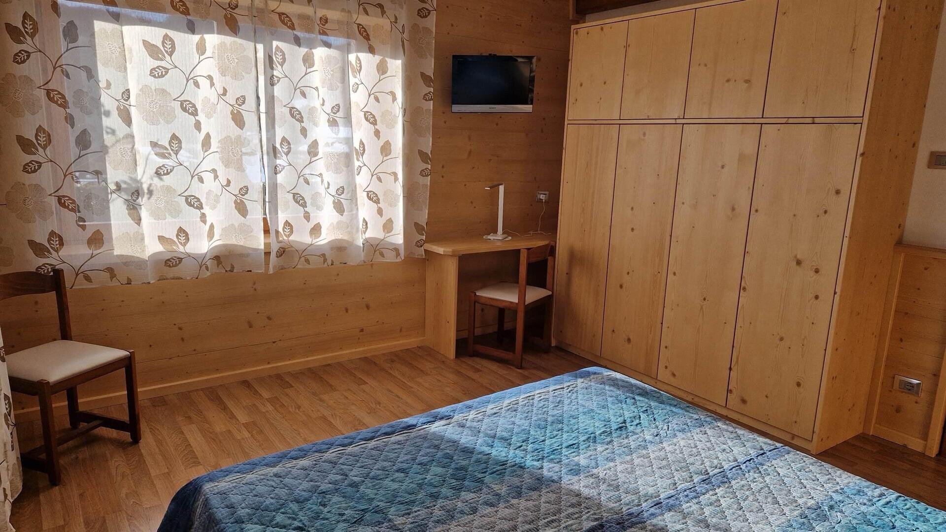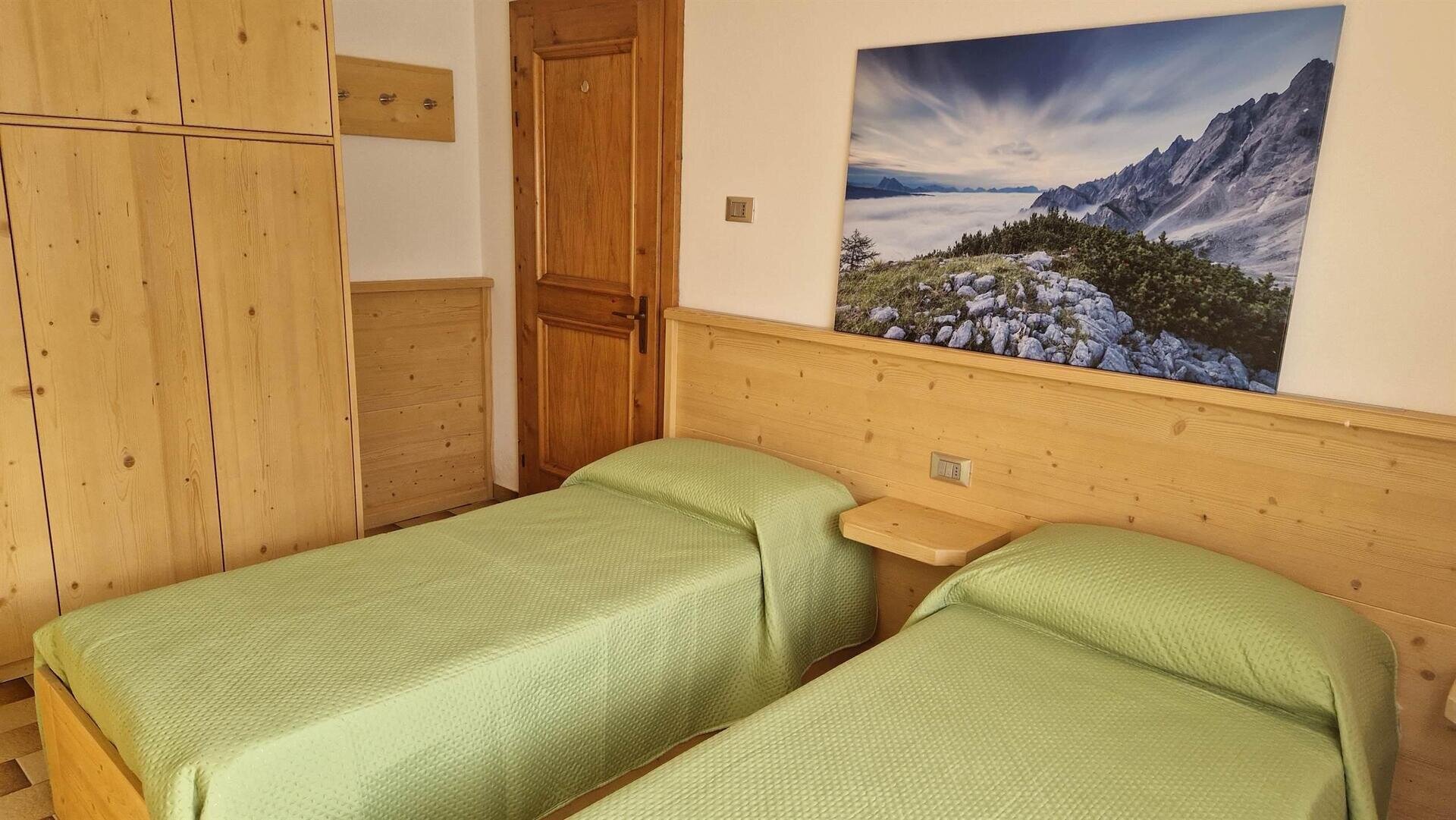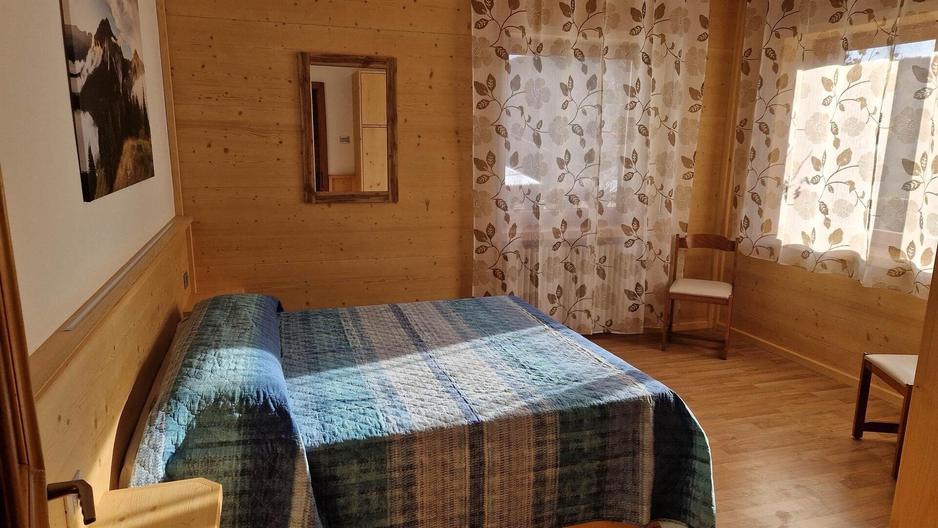 In the heart of the Bellunesi Dolomites, ground floor apartment located in a very quiet area with a beautiful panoramic view. It consists of a kitchen with gas oven, fridge with freezer, and television; bathroom with bathtub and washing machine; 1 bedroom with a double bed and television and 1 bedroom with two single beds, private parking for one vehicle, and free Wi-Fi. Available for rent during the summer season in June, July, August, and September, minimum rental of 7 days, preferably for adults or children over 6 years old, no pets. The tourist tax is calculated separately.
