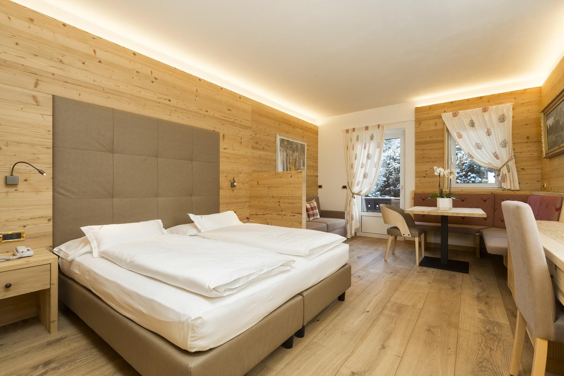 The Sport Hotel Arabba in the Dolomites, the most beautiful and characteristic part of the Alps, is a few steps far from the ski slopes of the Arabba - Marmolada ski area and from the centre of the village of Arabba.The restaurant of the Sport Hotel Arabba, which is mentioned also in the prestigious Michelin Guide, offers the specialities belonging to the ladin cooking tradition as well as excellent dishes from the Mediterranean and continental cuisine; Sport Hotel Arabba has furthermore a well-stocked wine cellar with several illustrious Venetian, South Tyrolean and international labels. The rooms of the Sport Hotel Arabba have Satellite TV with LCD screen and private bathrooms with bathrobe and slippers to enter the Wellness Centre; almost every room has its own terrace; the rooms De Luxe have a personal whirlpool bathtub. Sport Hotel Arabba can boast a wide and tempting Wellness offer: the Hotel SPA is divided into two different sections: the 'Alpen Wellness' (with free access for all the guests of the Hotel) has a wide Whirpool with upstream motion, Finnish sauna, Bio-Sauna 45°, turkish bath and tepidarium (and furthermore: water beds, eucalyptus and passion fruit aromatic showers, relaxation area with comfortable loungers). The 'Alpen Beauty' offers on the other hand beauty treatments, massage and solarium (on request).The Hotel has also a small fitness area and a fitness trail in the nature outside the hotel. In Summer, Sport Hotel Arabba is the ideal starting point for many excursions in the surrounding Dolomites, both with your mountain bike and on foot. The owners are furthermore always helpful and at your disposal in order to give you advices and to indicate you the places you definitely must see. In winter, Sport Hotel Arabba occupies the ideal position to reach in a few minutes the ski lifts of the ski area Arabba - Marmolada, of the ski area of the Sellaronda and, with a comfortable bus service from Malga Ciapela, the adjacent ski area of Mount Civetta. Sport Hotel Arabba is furthermore the ideal accomodation facility for cyclists and motorcyclists because of the many services dedicated: sporting massages ad hoc, maps and useful pieces of information, laundry service h24, pressure washer and much more.