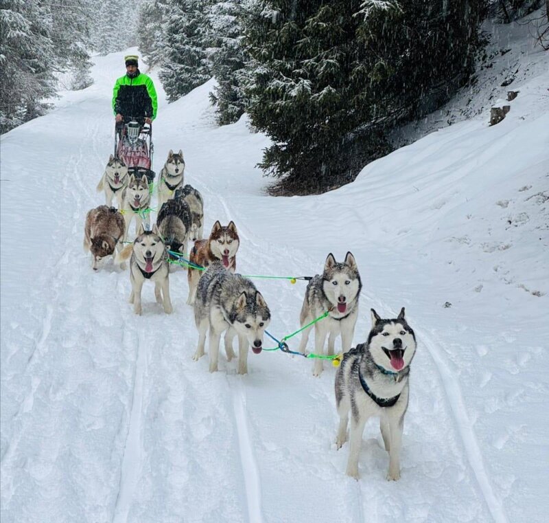 Bellissima ed indimenticabile escursione su neve alla guida di una slitta con festosi Cani Husky protagonisti di viaggi ed avventure in Artico e sulle Alpi.