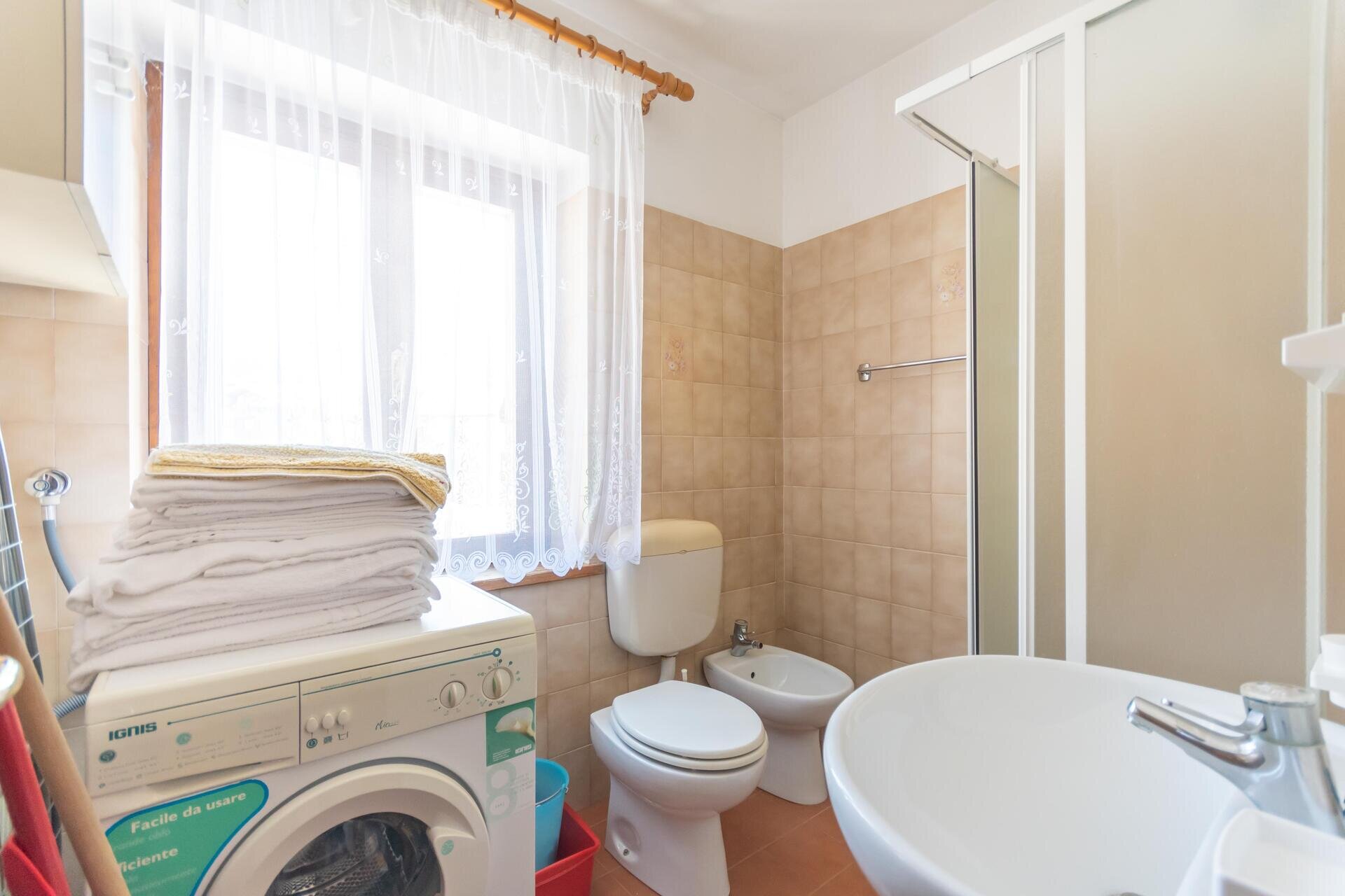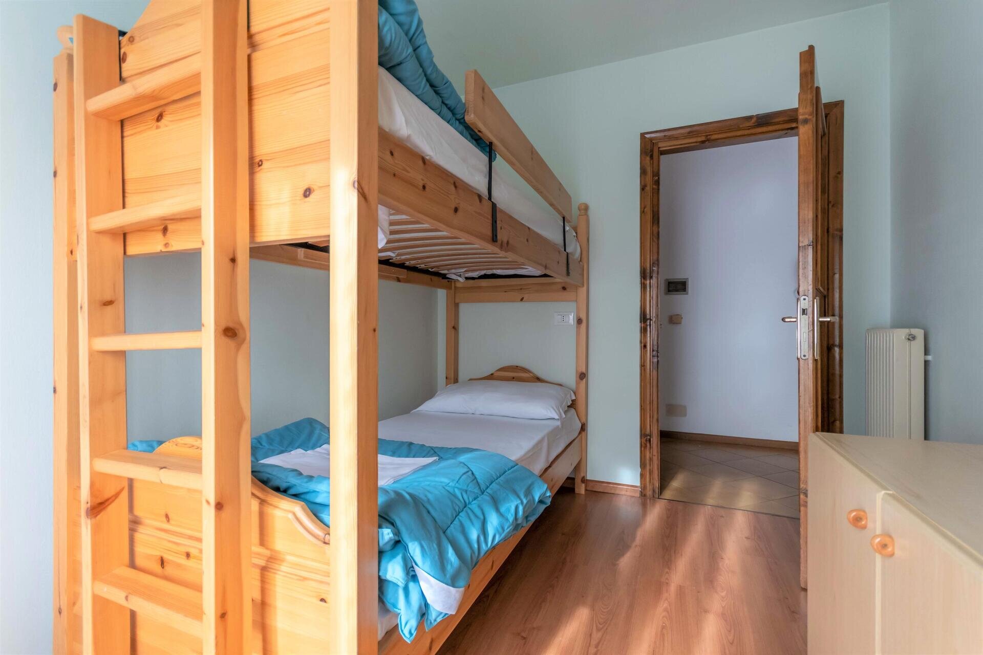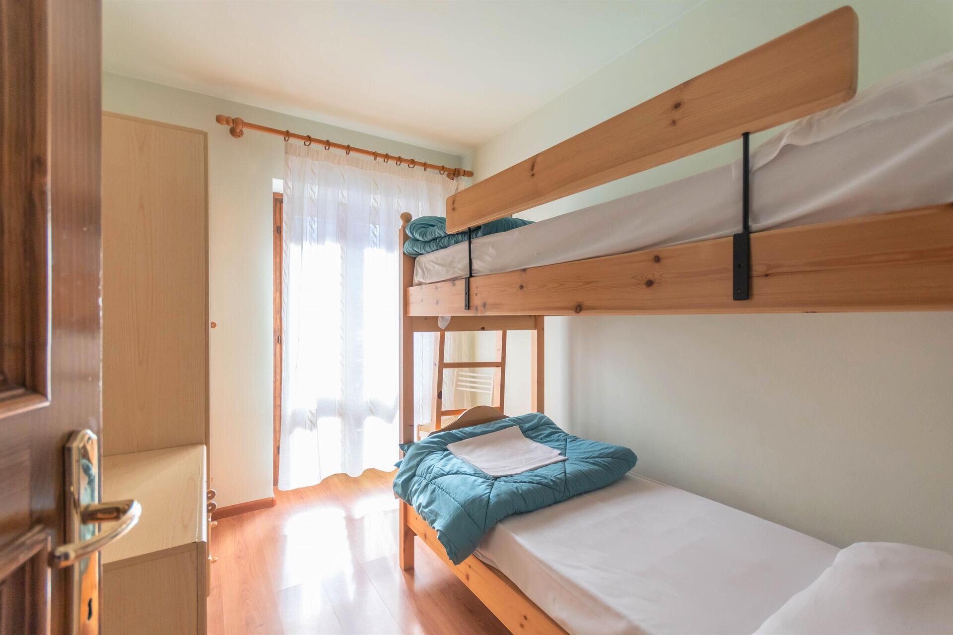 Sie besteht aus einem Wohnzimmer mit Kochnische und Doppelschlafcouch, einem geräumigen Schlafzimmer mit Doppelbett, einem Schlafzimmer mit Etagenbett und einem Bad mit Fenster.