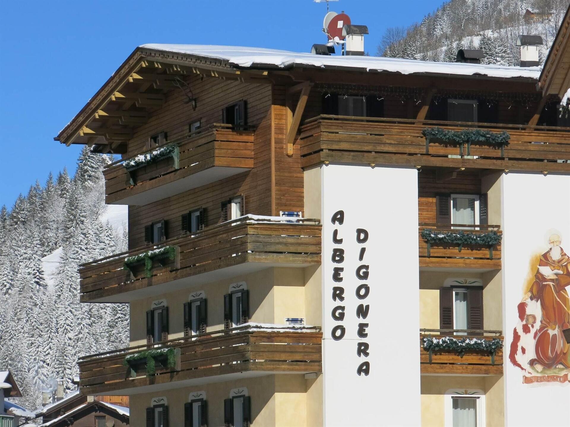 Il Digonera Historic Hotel dista in auto 10 minuti dalla funivia Marmolada, 20 minuti dal comprensorio sciistico Sellaronda e 40 minuti dalla famosa località sciistica di Cortina D'Ampezzo.