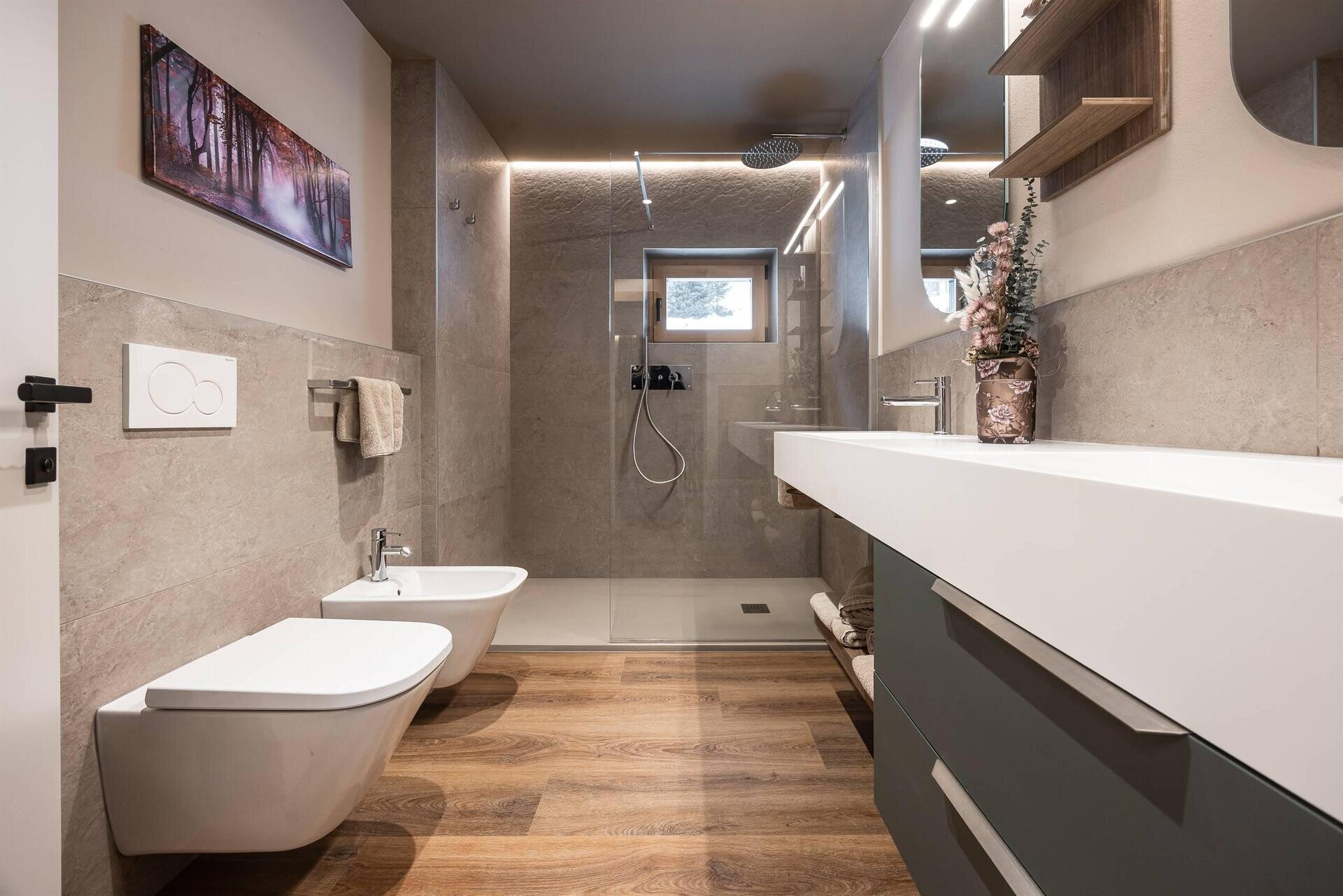 - Bagno con doccia, WC, bidet e asciugacapelli