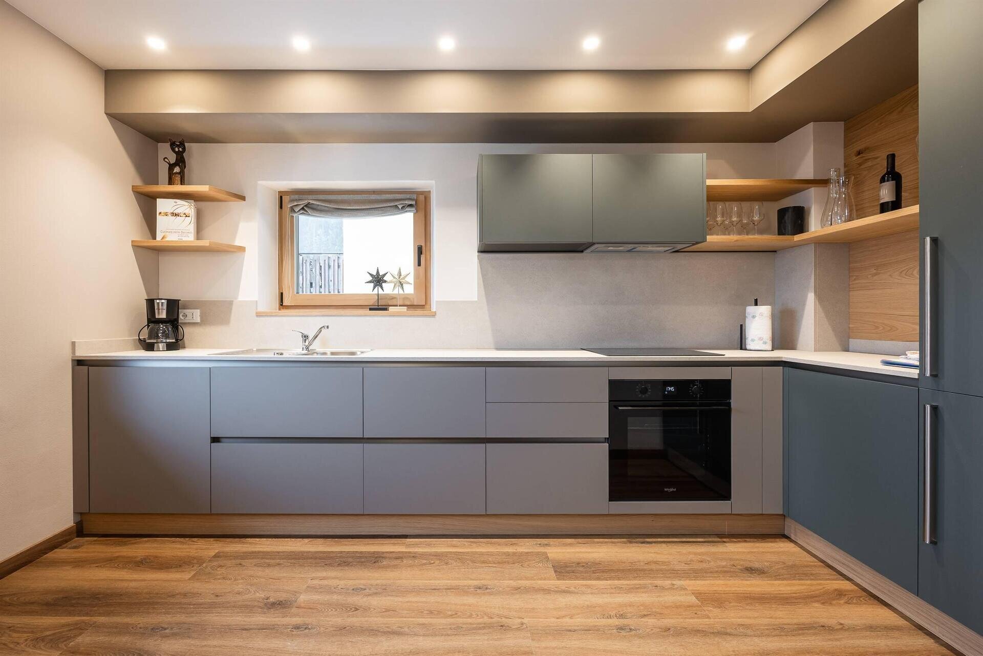 - Cucina completamente attrezzata: 4 piastre a induzione, forno, lavastoviglie, biancheria da cucina, bollitore, macchina per caffè americano e moka
