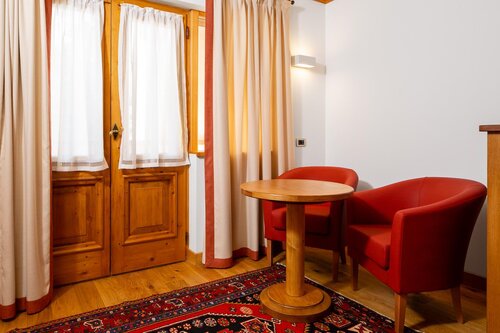 L'hotel dispone di camere singole con letto alla francese, camere doppie, triple e familiari. Tutte confortevoli, luminose, arredate su misura e per non fumatori. Balcone privato con vista, connessione Wi-Fi in camera gratuita, telefono diretto, TV LCD e cassaforte. Riscaldamento, pavimenti in parquet e bagno privato con set di cortesia, asciugacapelli e finestra. L'hotel dispone di ascensore e parcheggio privato. Spa con sauna, bagno turco e idromassaggio.