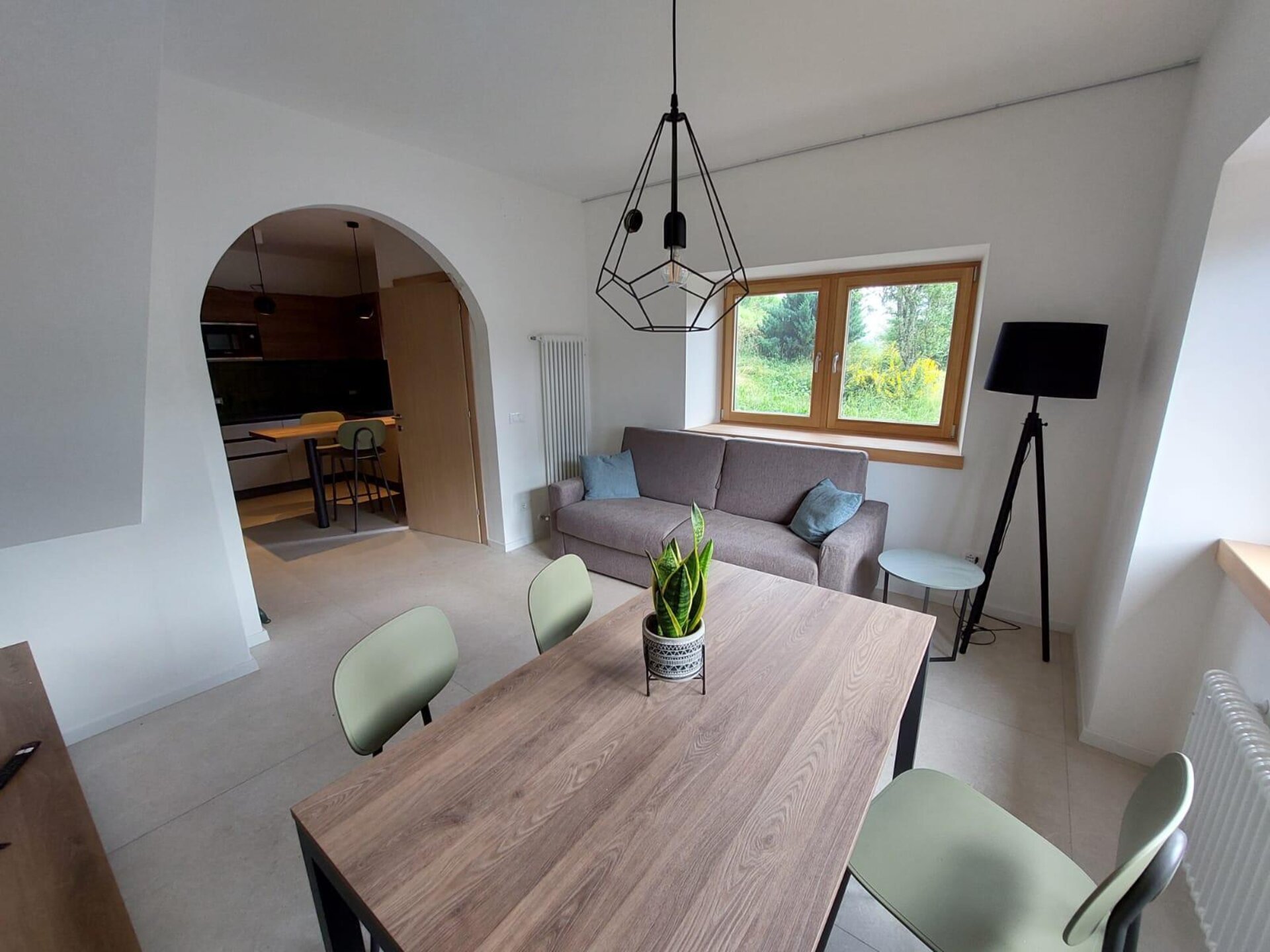 Situato in un edificio risalente ai primi anni del '900 che sorge in via Roma n. 28, a circa 500 metri dalla piazza principale della frazione di Dosoledo, l'appartamento "la casa di tufo" completamente ristrutturato nell'anno 2024, offre ambienti spaziosi dotati di comfort moderni ed elementi architettonici originali.