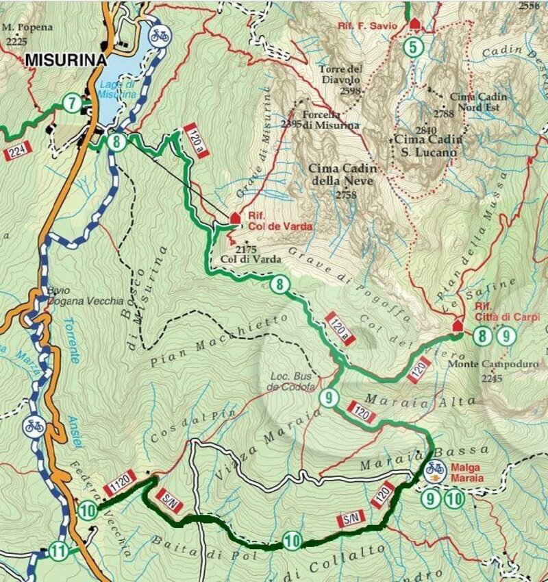 Seguire sentiero 1120 poi proseguire per sentiero 120 fino a raggiungere Malga Maraia.