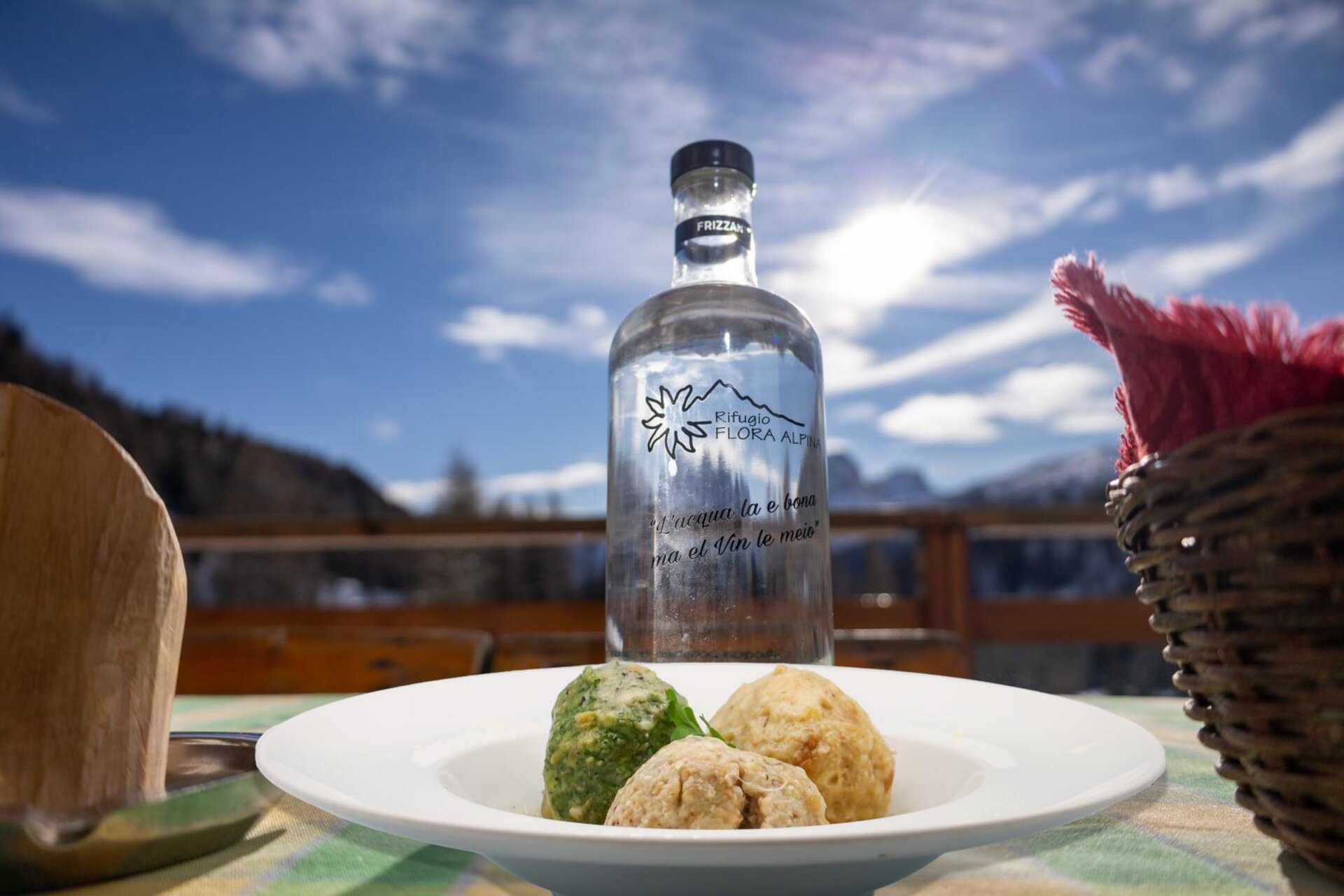 Flora Alpina è anche il luogo ideale per riposarsi dopo un' escursione e gustare i prodotti delle Dolomiti, come gli gnocchi di patate con ricotta affumicata, i casunziei, i canederli, lo stinco, e tutti i dolci rigorosamente fatti in casa come foresta nera, linzer, Sacher, torta di ricotta, strudel.