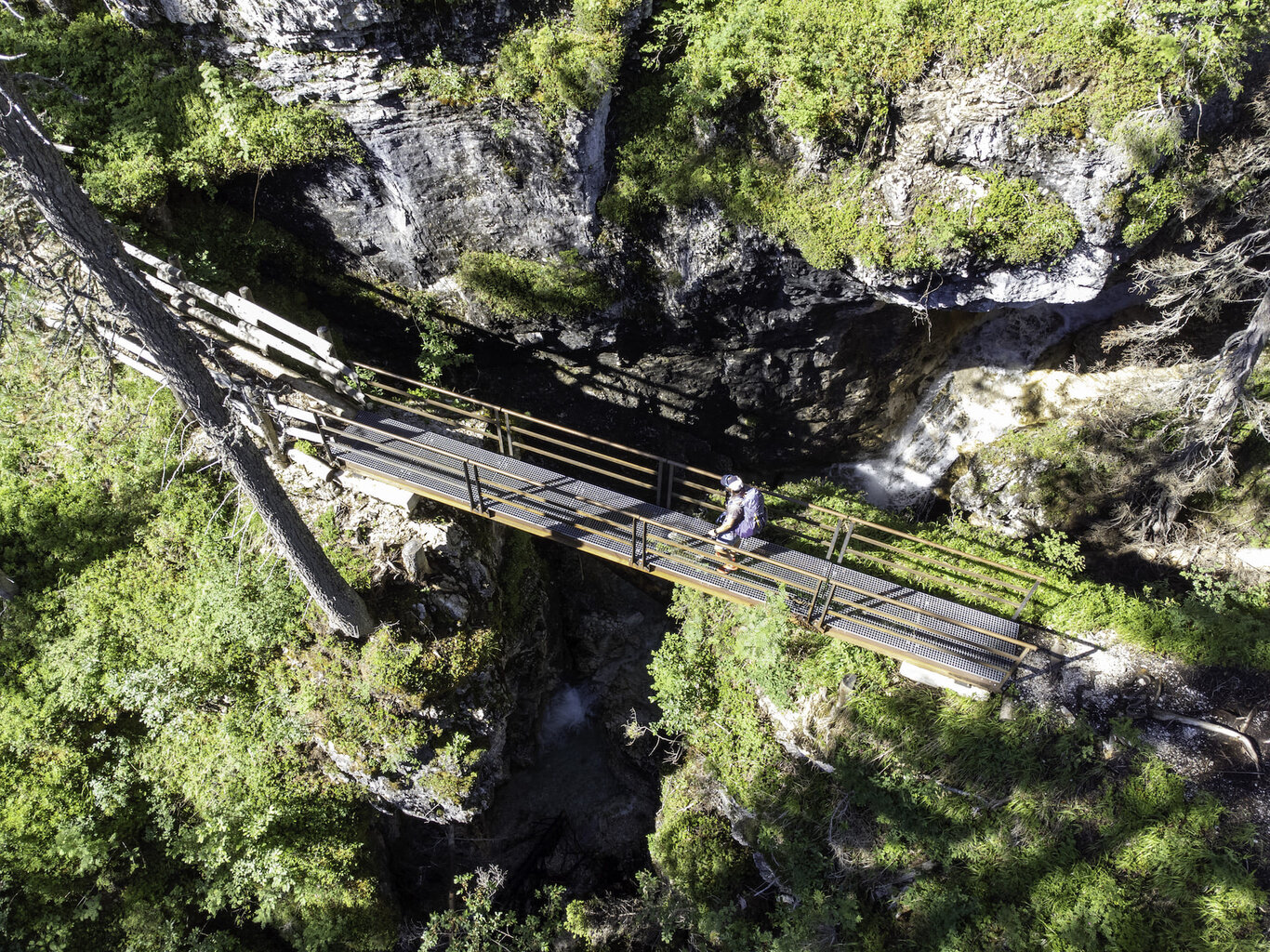Gole, rivoli d’acqua, cascate, ponti sospesi sul Ru Federa e punti panoramici sulla conca ampezzana. È quello che incontrerai lungo il sentiero Gores (gole) de Federa.